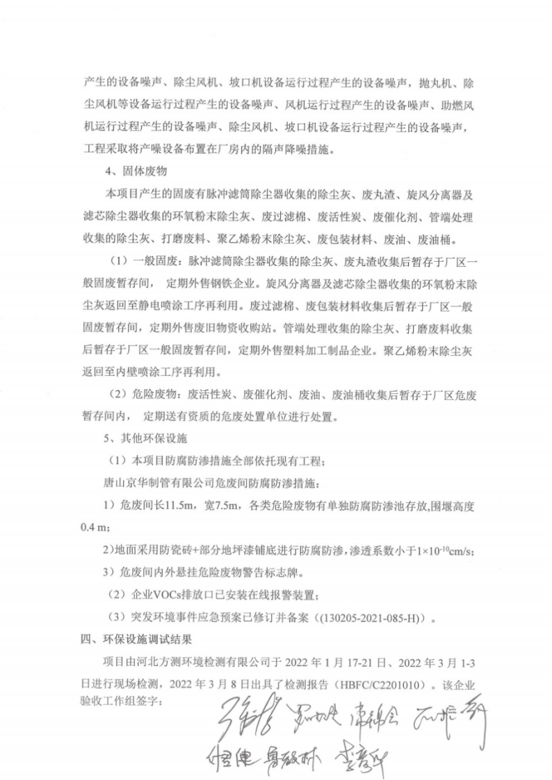 唐山京華制管有限公司年產(chǎn)10萬噸鋼管防腐深加工項目竣工環(huán)境保護(hù)驗收意見公示